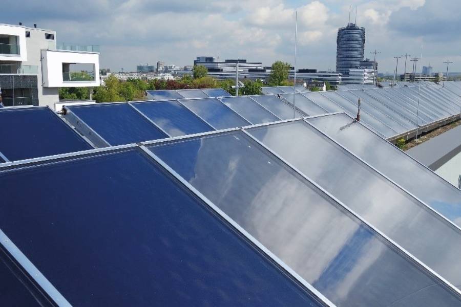 Im Fokus des Forschungsvorhabens steht die Solarthermie als eine besonders fluktuierende Energiequelle. Der Praxistest erfolgt in der dezentralen solarthermischen Wärmenetzeinspeisestation der Stadtwerke Düsseldorf. Die Anlage mit 232 Quadratmetern installierter Kollektorfläche erwärmt das aus dem Rücklauf des Fernwärmenetzes entnommenes Fluid auf Vorlauftemperaturniveau.