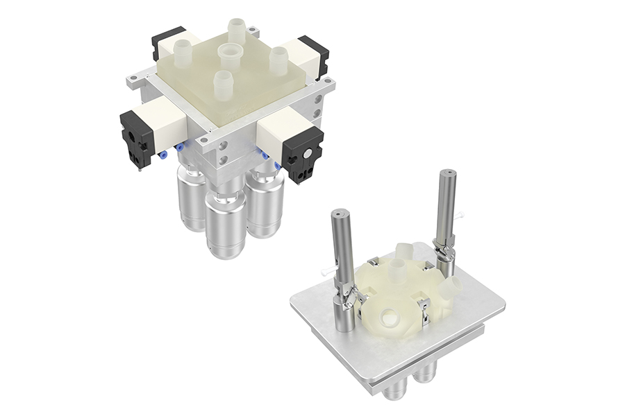 Die gefrästen Disposables können in verschiedenen Designs, mit unterschiedlichen Anschlüssen und Sensorintegrationen für den zielgenauen Einsatz im Up- und Downstream-Bereich gefertigt werden.
