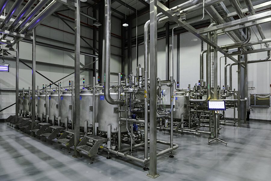Die Wasseraufbereitungsanlage gehört mit einer Leistung von dreimal 110 Kubikmetern pro Stunde zu den größten, die Krones bisher gebaut hat. Sie bereitet entsalztes Meerwasser auf und besteht aus drei Modulen mit Ultrafiltration, Umkehrosmose und Elektrodeionisation. Mit dem neuen, erstmals bei Makkah Water installierten Elektrodeionisations-Modul (EDI) lässt sich ultrareines, deionisiertes Wasser gewinnen, dem dann die gewünschten Mineralien zudosiert werden. Besonders wichtig ist das zusätzliche EDI-Modul bei der Herstellung von stillem Tafelwasser, da hier die mineralische Zusammensetzung exakt eingehalten werden muss. Außerdem gehören zum Lieferumfang ein Aktivkohlefilter sowie Module zur Remineralisierung und Ozonisierung: Die Mineralien-Dosierstation Hydronomic MDS erlaubt mittels Massedurchflussmesser eine hochgenaue Dosage von verschiedenen Mineralien. Die Ozonisierungs-Anlage Hydronomic OZ dient der mikrobiologischen Stabilisierung vor dem Abfüllen.